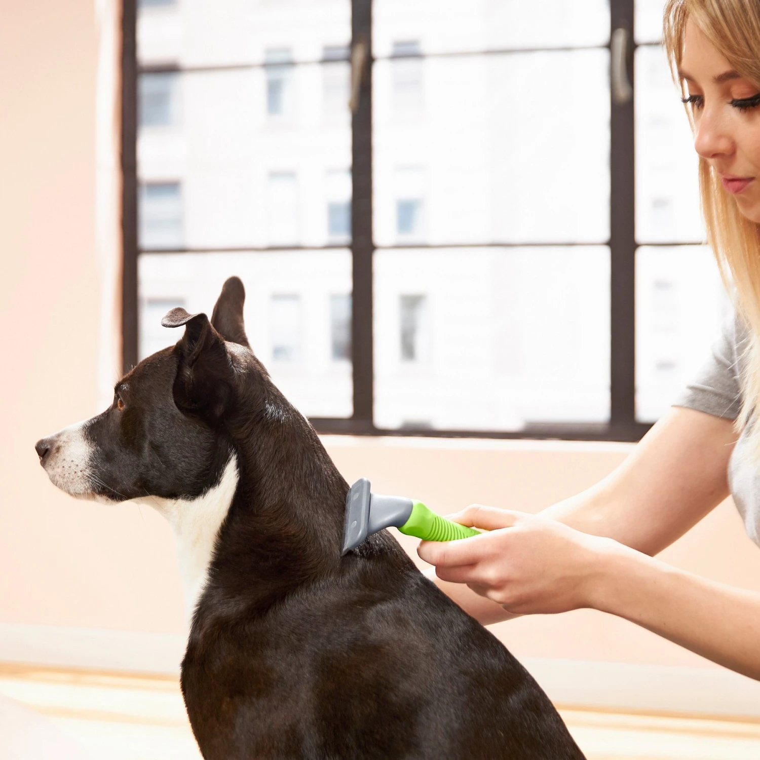 Say goodbye to your friend’s furry tumbleweed tangles with this deshedding brush from Frisco by Chewy! With a 4.5” stainless-steel blade built for durability, angled tooth design and ergonomic handle, it’s great for tackling tough tangles and knots in your dog’s or cat’s coat while helping to reduce overall shedding of dead, loose hair. It’s available for short-to-medium length haired and medium-to-long haired breeds. Plus, it has a lightweight, ergonomic handle with a soft, nonslip grip to help you stay comfortable and in control during grooming.