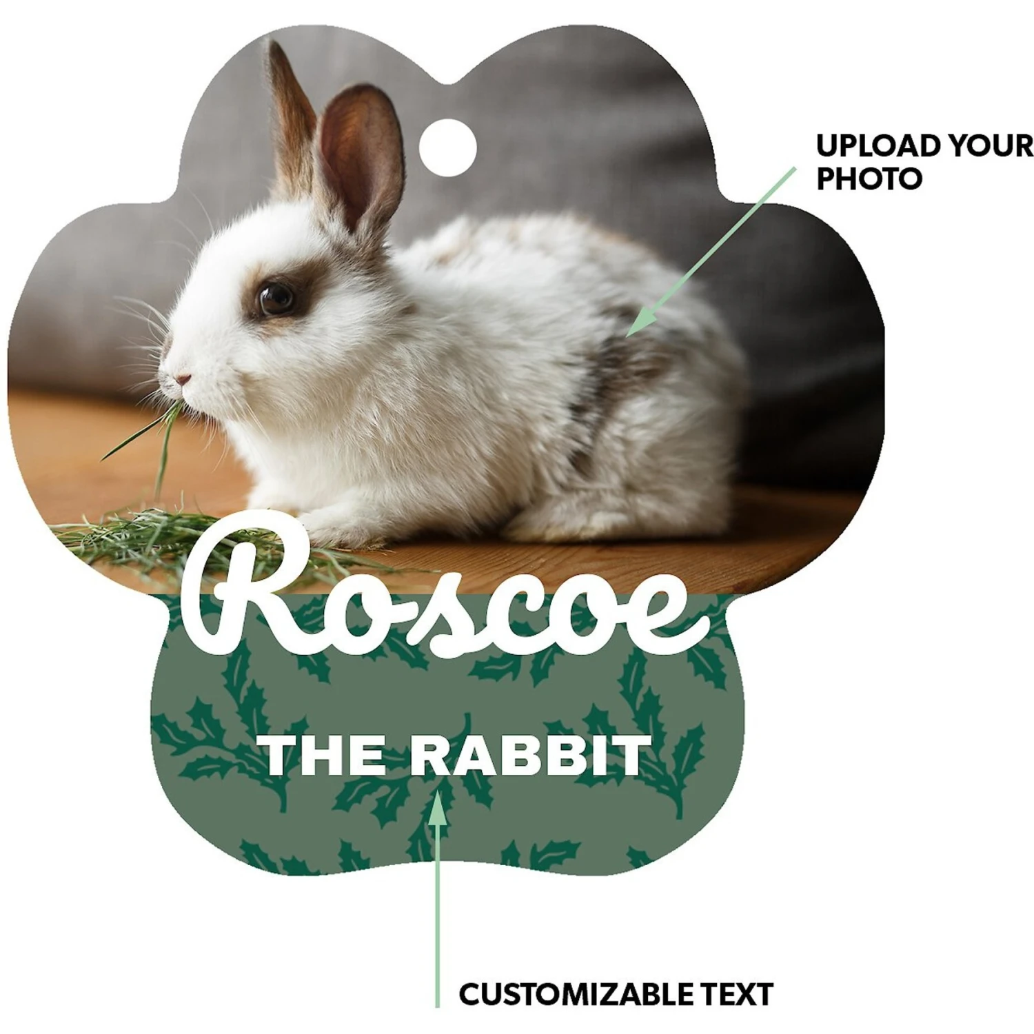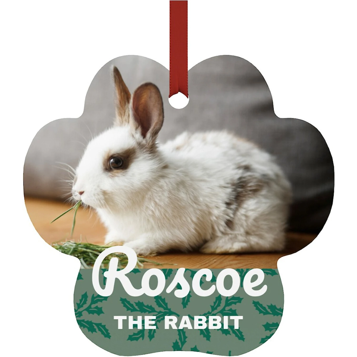- Adorable paw print ornament with green holly leaves pattern.