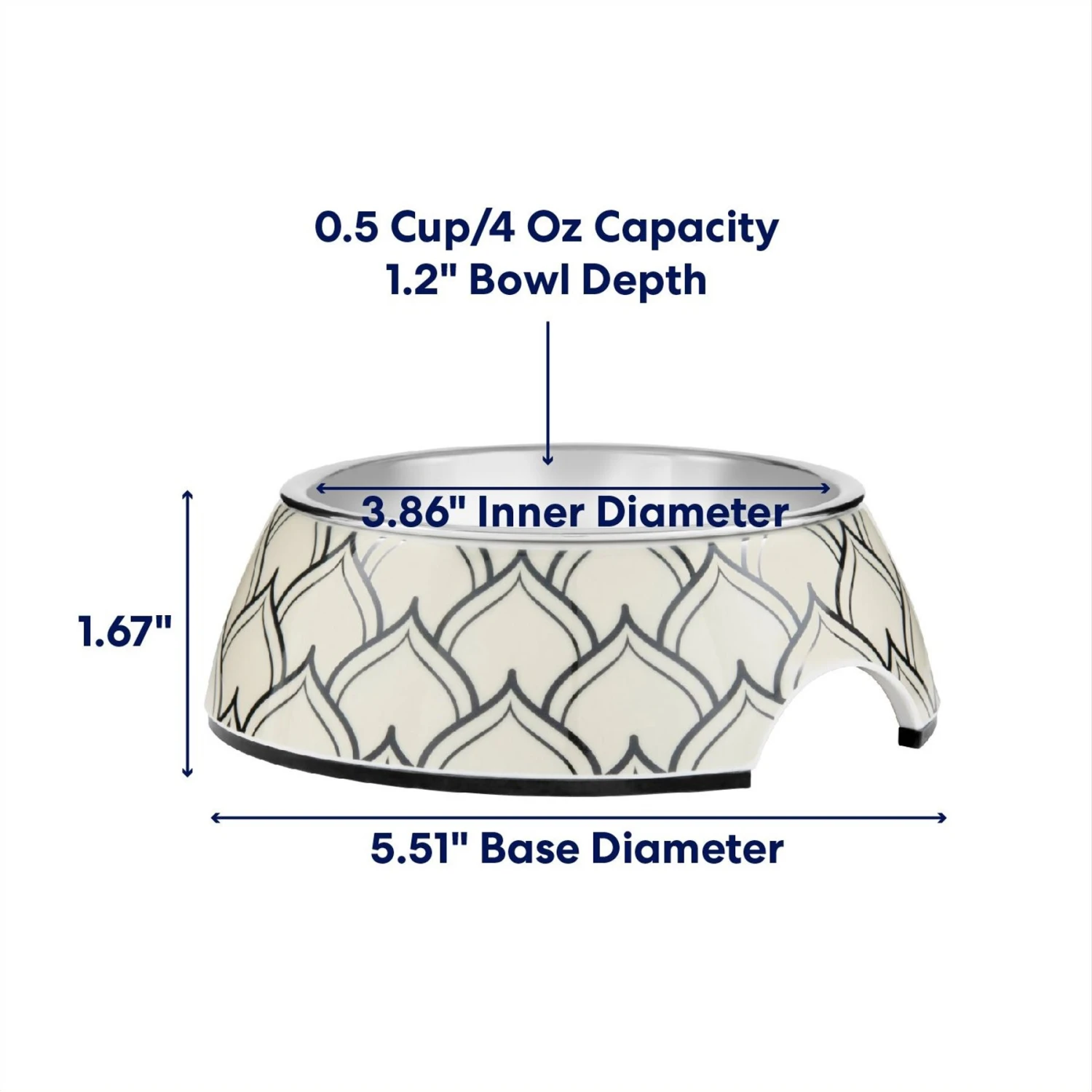 It’s always a positive when our pets are excited to eat, and it doesn’t get more enticing than this exotic Moroccan design stainless-steel bowl. Think of it as pulling out the fancy dinnerware for those special dinner dates, except this fancy bowl will always be around! Time to clean up? The stainless-steel bowl can be removed from the melamine base whenever things get dirty. It’s also top-rack dishwasher safe, making cleanup an absolute breeze.