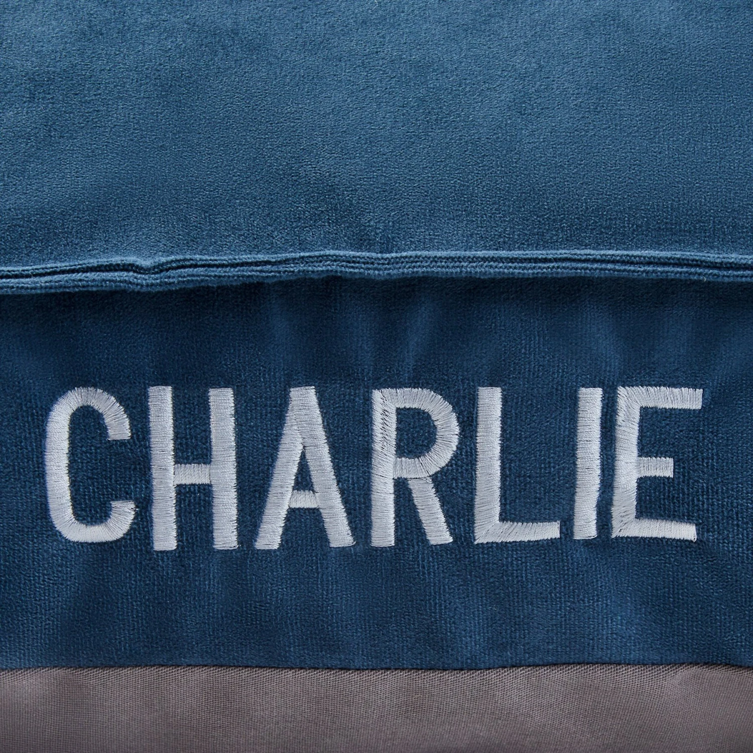 Frisco Personalized Navy Bolstered Bed With Navy Check Bolster, X-Large