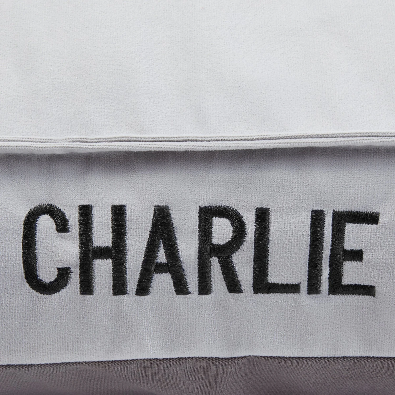 Make naptime personal for your dog with the Frisco Personalized Silver Bolstered Bed! This single-side, back bolster-style bed features a soft, microfiber cover, a supportive bolster with a silver-checkered pattern and lots of lofted polyfill inside. It’s customizable with up to 10 embroidered characters in your choice of white or black thread, and flair script or block caps font. It literally has your pet’s name on it! Plus, there’s no need to worry if it gets a little dirty—just unzip the YKK zipper and give the machine washable cover a spin to keep it clean, comfortable and inviting, nap after nap.