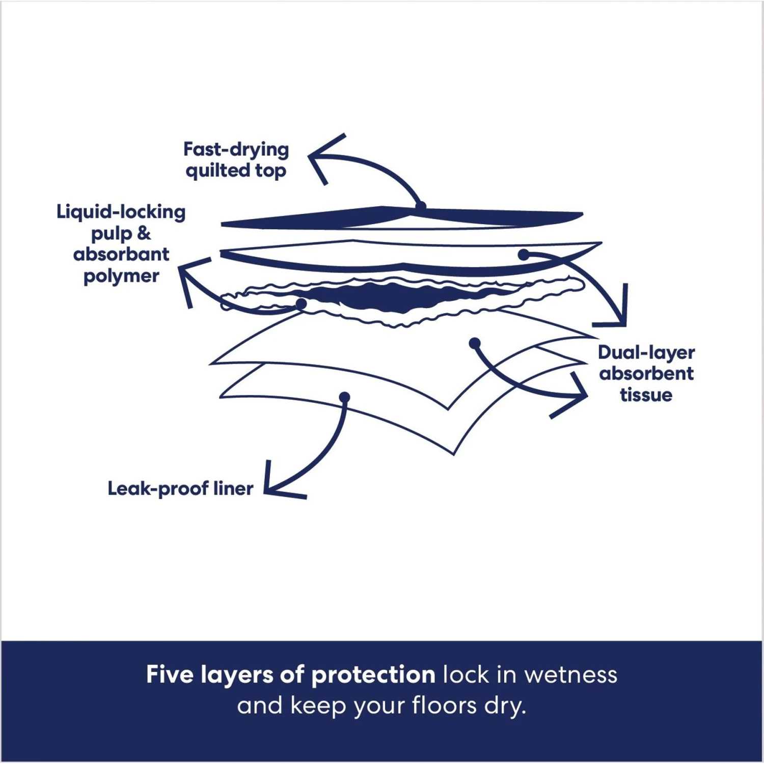 Frisco Giant Dog Training & Potty Pads, 27.5 x 44-in, Unscented, 30 count—Pups love exploring the great outdoors, and when they find something new, they like to mark their discovery. Frisco Premium Giant Training & Potty Pads are like a personal patch of grass right at home, just waiting to be discovered. That’s why they’re the best spot in the house. These potty pads have an effective built-in dog attractant that’s ideal for training puppies, but also entices indoor pets so they know exactly where to go. With five layers of durable protection to lock in wetness, a leak-proof plastic lining and a fast-drying quilted top layer to prevent tracking, Frisco Premium Training & Potty Pads absorb the mess and ensure your floors and the surrounding areas stay dry. Frisco by Chewy has you covered with all the essentials for a happy pet, from poop bags to litter, apparel, toys, beds, dinnerware, leashes and collars and lots more.